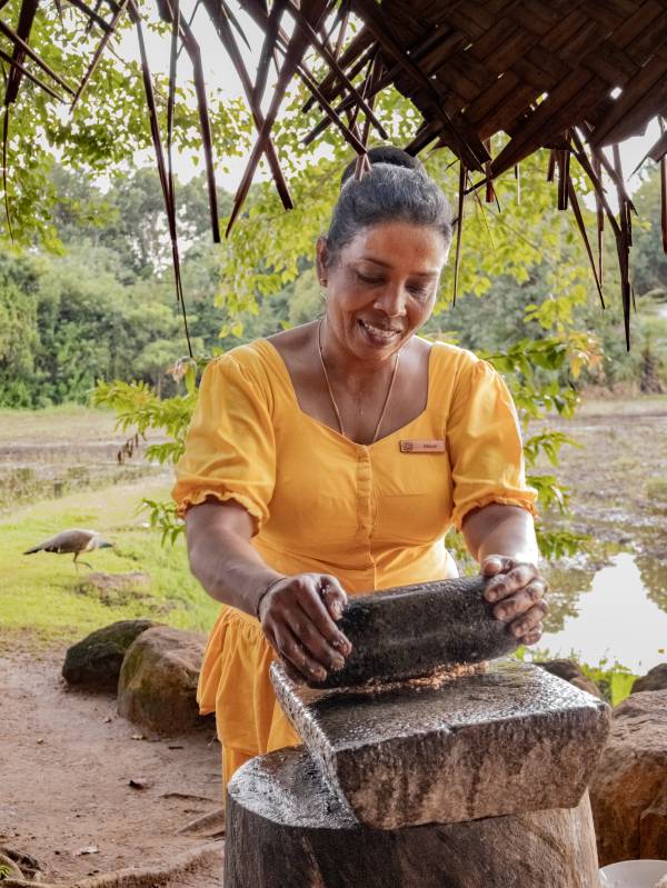 Bestgehütetes Geheimnis: Kamatha Dinner – Essen im Reisfeld mit traditionellen Gerichten aus der alten Königsküche. Gekocht wird wie in alten Zeiten und direkt vor den Gästen.